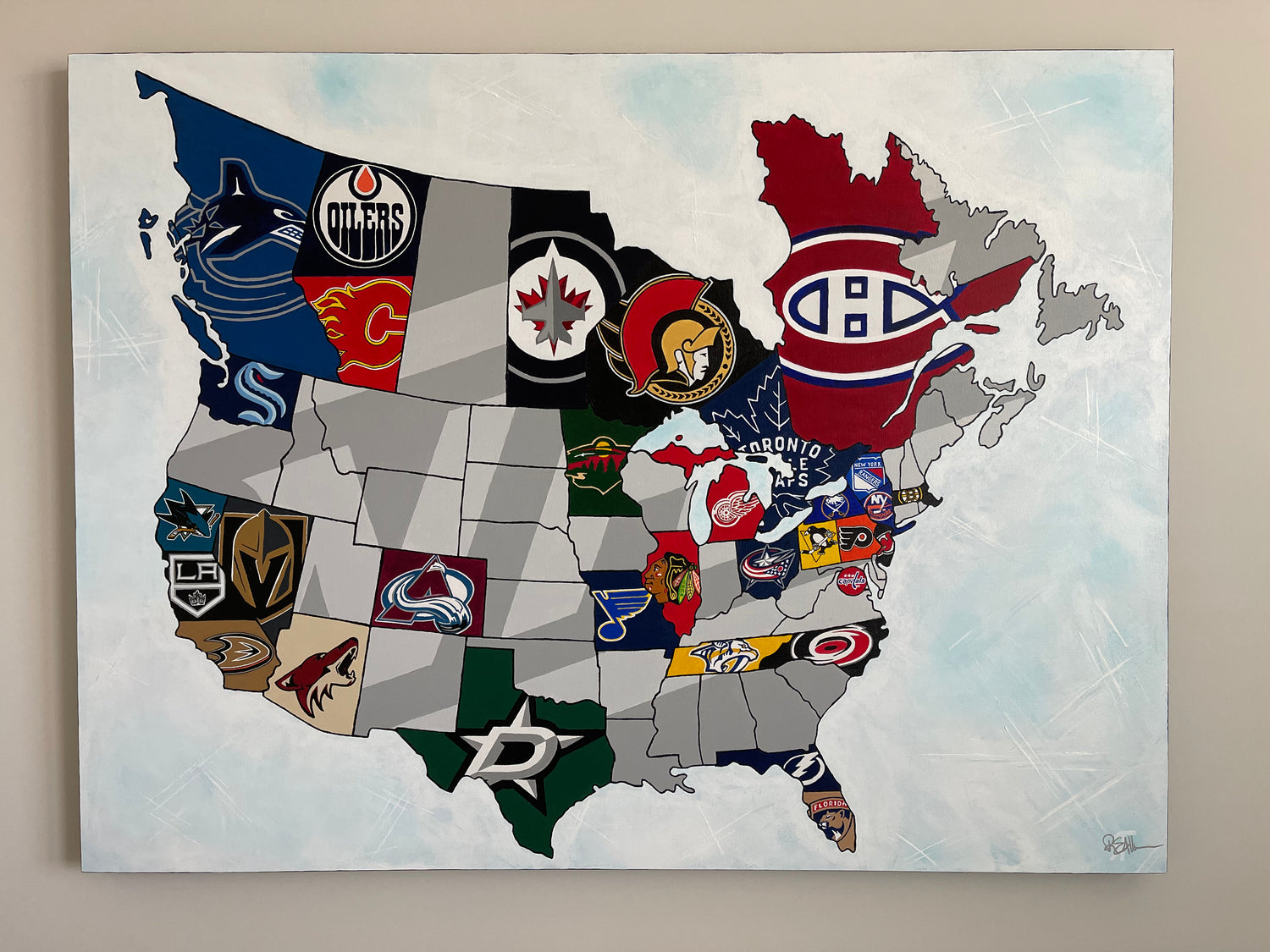 This painting was completed in 2021 to introduce the newest team to the league, the Seattle Kraken. This painting was done for the NHL and sent to their HQ in New York upon completion.